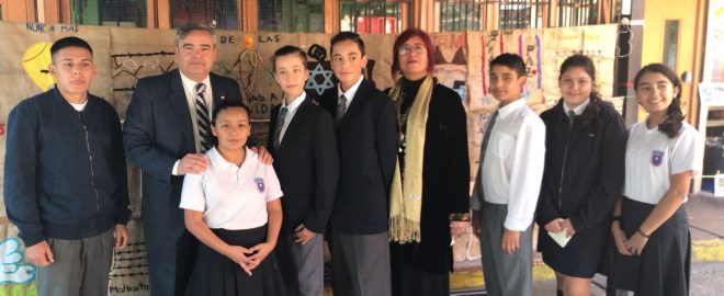 Tras una jornada de dos días del Taller Internacional de Educación sobre el Holocausto y otros Genocidios -dirigido a un total de 120 docentes de básica y media, y sostenedores del sistema educación público y particular subvencionado- las instituciones organizadoras del evento visitaron la Escuela República de Israel, de la Comuna de Santiago. El objetivo de la visita fue conocer y reflexionar sobre la experiencia del proyecto pedagógico de educación sobre la temática, denominado “Camino de la libertad y la esperanza 2017-2018” de la Escuela República de Israel. En la ocasión se dio la oportunidad de compartir y dialogar con las y los estudiantes y docentes que participaron en el proyecto.