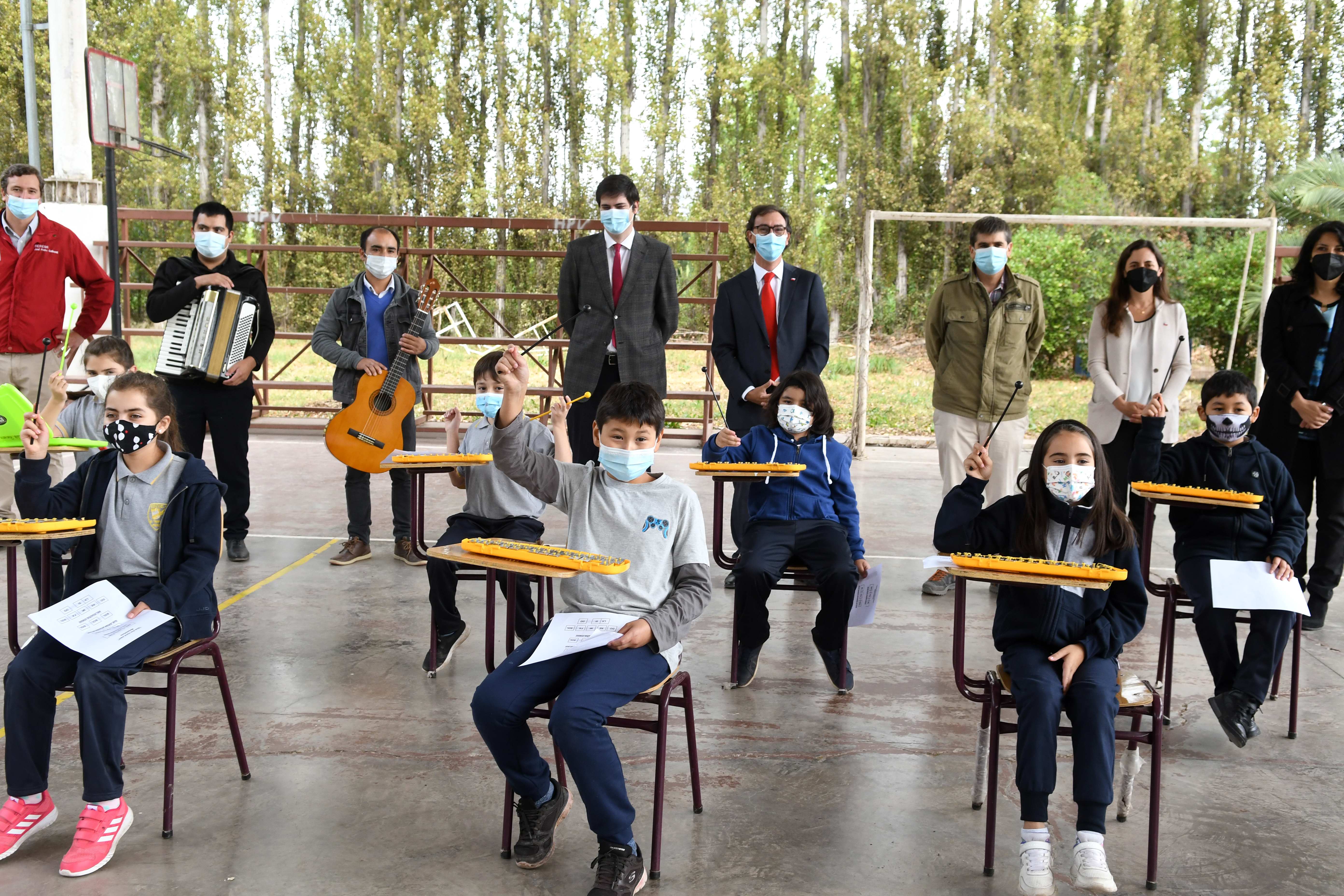 Esta mañana, el ministro de Educación, Raúl Figueroa, la ministra de Agricultura, María Emilia Undurraga, el Secretario Ejecutivo de la Agencia de Calidad de la Educación, Daniel Rodríguez, y el alcalde de Paine, Diego Vergara, visitaron la Escuela Hugo Pino Vilches de la comuna de Paine, para anunciar la entrega de recursos impresos para realizar un diagnóstico integral de aprendizajes postpandemia a más de 200 mil alumnos de 3.200 escuelas rurales, con menor conectividad a lo largo del país.