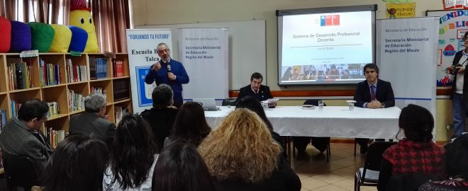 El director del Centro de Desarrollo Docente, (CPEIP) del Ministerio de Educación, Prof. Jaime Veas, se reunió hoy con más de 200 docentes de la región del Maule para explicar en profundidad el Sistema de Desarrollo Profesional Docente, recientemente creado por la ley 20.903. La instancia fue convocada por el Secretario Regional Ministerial de Educación, Rigoberto Espinoza Gutiérrez, con la finalidad de responder inquietudes de los profesores respecto a esta ley.