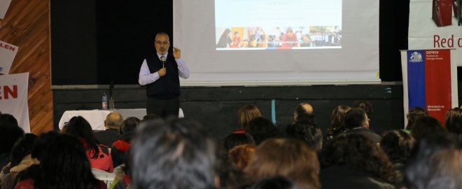“El Sistema de Desarrollo Profesional Docente busca reconocer a la docencia como una profesión altamente compleja y desafiante, apoyar su ejercicio y aumentar su valoración social en las nuevas generaciones”. Así lo destacó el profesor Jaime Veas, director del Centro de Desarrollo Docente del Mineduc (CPEIP), al iniciar la jornada a la cual fue invitado por el Colegio de Profesores Comunal de la Comuna de Peñalolén.
