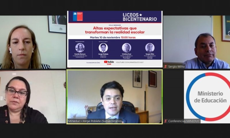 Seminario online “Altas expectativas que transforman la realidad escolar”, buscó transmitir el valor de desarrollar una cultura de altas expectativas en los establecimientos y mostrar ejemplos concretos de dos Liceos Bicentenario que han implementado estrategias que han posibilitado cambios y resultados positivos en sus recintos escolares.