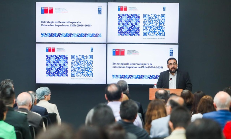 En el Complejo Universitario Vicuña Mackenna 20 de la Universidad de Chile, la Subsecretaría de Educación Superior hizo entrega al ministro de Nicolás Cataldo, la Estrategia de Desarrollo para la Educación Superior 2026–2038, el primer instrumento de planificación de largo plazo para el sistema, elaborado conforme al mandato de la Ley 21.091, y como parte de la agenda de modernización que impulsa la subsecretaría.