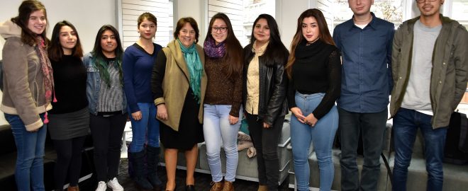 Wendy Ortiz, estudiante peruana de primer año de Pedagogía en Artes Visuales de la UMCE que participó en el desayuno, destacó que su decisión vocacional se debe a que “el arte fomenta la interacción cultural que se da con la inmigración, me interesa la adaptación de los niños frente a esto. Como migrante, sé que cuesta adaptarse a la comida, a la forma del lenguaje y a la sociedad y en eso el colegio influye mucho”. Respecto a la Gratuidad, manifestó que “es una gran oportunidad para las personas que no tienen recursos”.