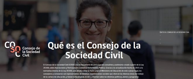 El COSOC es un mecanismo directo de participación ciudadana, de carácter pluralista y representativo a nivel nacional, que asegura la participación de las diferentes organizaciones vinculadas a las temáticas de educación, cumpliendo la función de órgano asesor y colaborador en la construcción de las diferentes políticas y programas ministeriales.