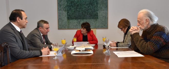 Además de la secretaria de Estado, asistieron a la constitución de la comisión evaluadora el rector de la Universidad de Chile; Ennio Vivaldi; el rector de la Universidad de La Serena, Nibaldo Avilés, en representación del Consejo de Rectores; y el representante de la Academia Chilena de Bellas Artes, Fernando García. En tanto León Schidlowsky, Premio Nacional de Artes Musicales 2014, se excusó de participar, porque su avanzada edad le impide viajar a Chile.