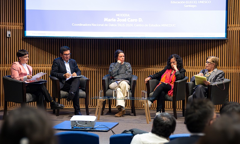 Más adelante, un panel conformado por Beatrice Ávalos, Premio Nacional de Ciencias de la Educación 2013; Lilia Concha, directora del CPEIP del Mineduc; Francisca Elgueta, Global Teacher Prize 2022; y Carlos Henríquez, coordinador del Laboratorio Latinoamericano de Evaluación de la Calidad de la Educación de Unesco Santiago, comentó los resultados del estudio.