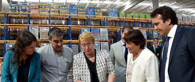 La Ministra de Educación Adriana Delpiano acompañó a la Presidenta de la República Michelle Bachelet a las bodegas de distribución de textos escolares del Mineduc en la comuna de Pudahuel.