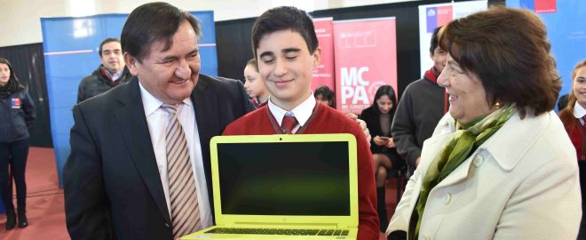 La secretaria de Estado explicó que “a partir de mayo, junto a la Presidenta Michelle Bachelet, comenzamos la entrega de computadores en la Región del Biobío. Hoy estamos entregando los primeros computadores en La Araucanía y comienza la entrega completa a todos los estudiantes de la educación pública. Son más de 90 mil estudiantes en todo Chile los que este año recibirán su computador, además de esta pulsera especial que tiene relación con el programa de vida saludable”.