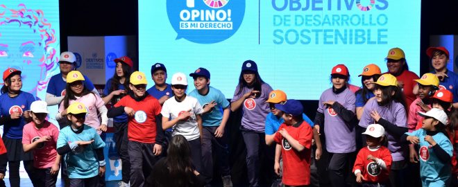 El lanzamiento de “Yo Opino, es mi derecho” se desarrolló en el Centro GAM, con el inicio del ciclo de charlas “Cambiemos el mundo”, que invita a diez Premios Nacionales a escenificar sus presentaciones en conjunto con artistas del ámbito del cine, la música, la ilustración, el teatro y la TV para explicar algunos de los 17 Objetivos de Desarrollo Sostenible, acordados por los países miembros de la ONU.