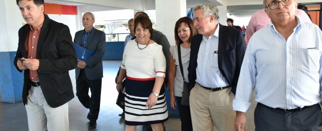 La secretaria de Estado visitó esta tarde la Escuela Profesora Gladys Valenzuela en Lo Prado, durante el proceso de reconocimiento de salas, junto con el vicepresidente ejecutivo del Consejo de Rectores (CRUCH), el rector de la Universidad de Valparaíso, Aldo Valle, y el presidente del Consorcio de Universidades del Estado (CUECH), el rector de la Universidad de Chile, Ennio Vivaldi, entre otras autoridades académicas y el alcalde de Lo Prado, Maximiliano Ríos.