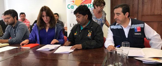 En la ocasión, la autoridad del Mineduc firmó un convenio de colaboración con la municipalidad de Constitución, encabezada por el alcalde Carlos Valenzuela, para el equipamiento, mobiliario y la habilitación de los módulos escolares que recibirán a los estudiantes del Liceo Mac Iver, de la localidad de Santa Olga, que resultó con daño total.