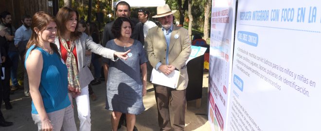 En el Parque Bicentenario de la Infancia la ministra (s) de Educación María Isabel Díaz; la secretaria general de Gobierno, Paula Narváez; los ministros de Desarrollo Social (s) Juan Faúndez y de Salud (s), Jaime Burrows, junto con la secretaria ejecutiva del Consejo Nacional de la Infancia, María Estela Ortiz, dieron a conocer las acciones que impulsa el Gobierno para resguardar el bienestar de los niños, niñas y adolescentes afectados por los incendios forestales.
