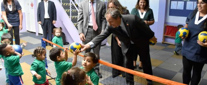 Hasta la Sala Cuna y Jardín Infantil Parque de Los Reyes en la comuna de Santiago, llegaron esta mañana el ministro de Educación, Gerardo Varela, junto a la subsecretaria de Educación Parvularia, María José Castro, y el alcalde de la comuna, Felipe Alessandri, para participar del lanzamiento del Año de Educación Parvularia 2018.