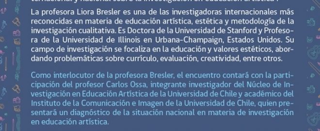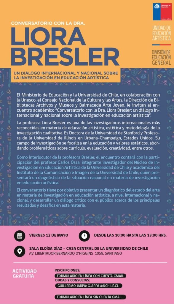 ¡Reserva el día! Conversatorio con la Dra. Liora Bresler: 12 de mayo, 10:00 hrs.