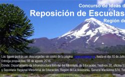 El Departamento de Infraestructura Escolar del Ministerio de Educación invita a los arquitectos al concurso de Ideas de Arquitectura “Reposición de Escuelas Rurales, Región de la Araucanía”, de las comunas de Los Sauces, Gorbea, Melipeuco, Nueva Imperial y Teodoro Schmidt.