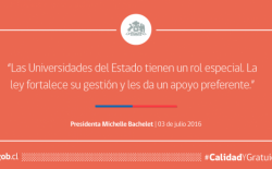 “No podemos esperar que los problemas sean resueltos sólo por el mercado; porque la educación no es un bien de consumo que se pueda administrar como un mero negocio”, dijo. Y a agregó: Miles de estudiantes ya han podido comprobar que la gratuidad llegó para quedarse. Ahora, queremos que quede establecido por ley que no hay vuelta atrás, que Chile conquistó un derecho permanente que se irá concretando gradualmente”.
