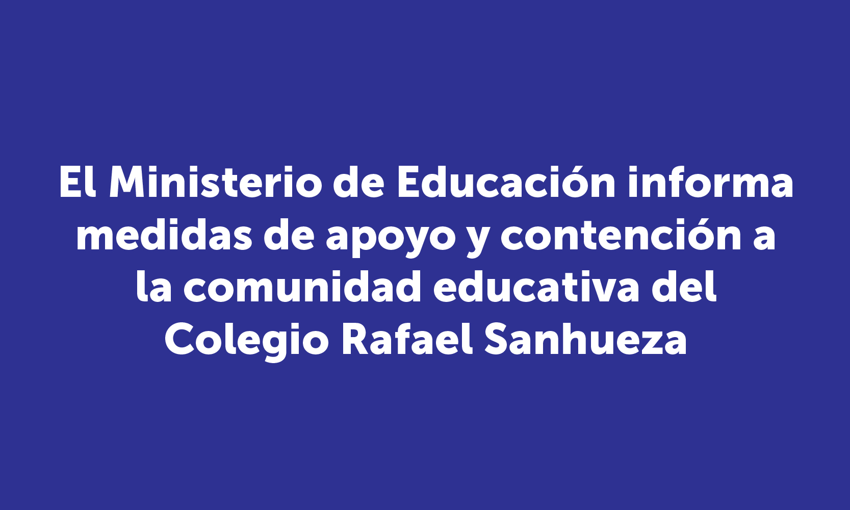 El Ministerio de Educación informa medidas de apoyo y contención a la comunidad educativa del Colegio Rafael Sanhueza