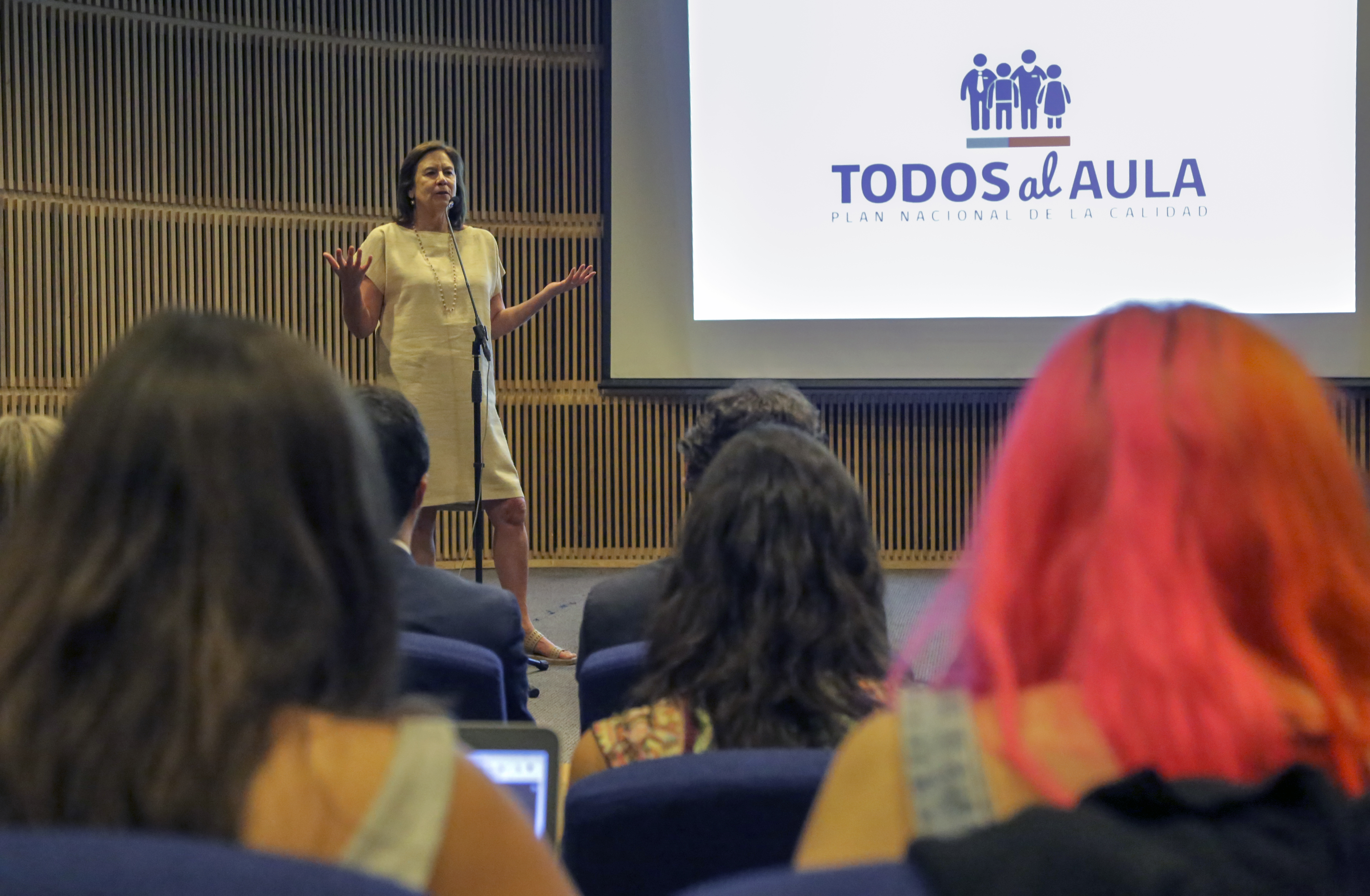 La ministra de Educación, Marcela Cubillos, enfatizó en la importancia del plan “Todos al Aula” que va en directo beneficio para la educación pública. “Todos las madres y padres quieren ver en la escuela de sus hijos a directores dedicados a lo que ocurre adentro de la sala de clases y no dedicados a trámites y burocracia. Directores nos cuentan que hoy pueden perder hasta el 80% de su día en trámites en vez de poder dedicar ese tiempo a labores pedagógicas”.