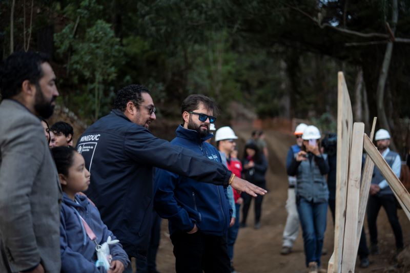 En la actividad, que se realizó en donde hoy se construyen las nuevas dependencias del establecimiento destruido durante el tsunami de 2010, el mandatario estuvo acompañado por estudiantes, profesores, funcionarios y funcionarias, comunidad estudiantil, familias de Juan Fernández y por el ministro de Educación, Nicolás Cataldo; el alcalde, Pablo Manríquez; los senadores Ricardo Lagos Weber y Juan Ignacio Latorre y el diputado Nelson Venegas.