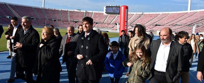 A las 9 de la mañana comenzaron las actividades en el Estadio Nacional, el principal centro deportivo de Chile. Las autoridades presentes descubrieron una placa que identifica al recinto como la principal sede de la Copa del Mundo 1962, junto a los seleccionados chilenos de aquella época Leonel Sánchez, Humberto “Chita” Cruz y Sergio Navarro.